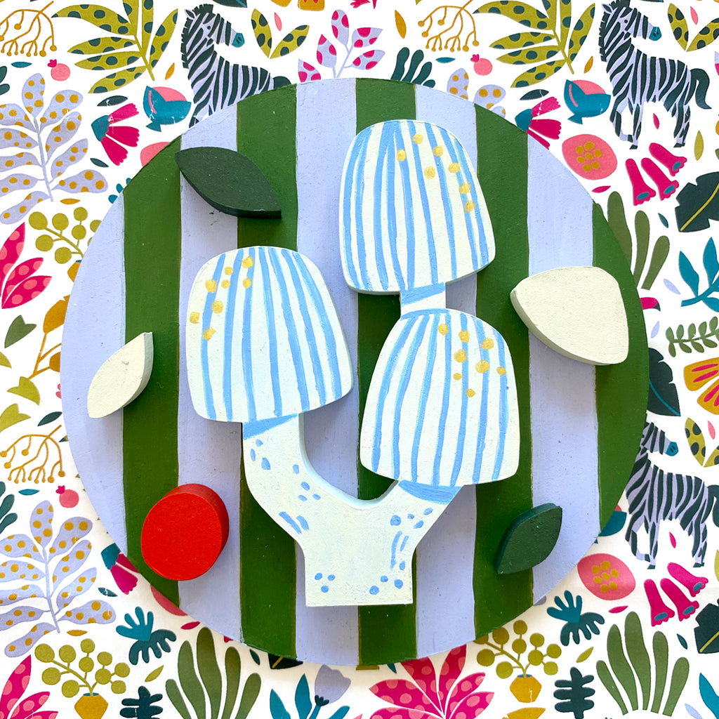 Este lindo set pintado a mano con acrílicos y decorado con marcadores, es una pieza única que podrías colocar en un lugar especial de tu casa. Está compuesto de una base de 5,5 mm de 15 cms de diámetro y 1 figuras de mdf de 9 mm. Trae un gancho para colgar y es un diseño exclusivo de Wild Me hecho con cariño para compartir arte y creatividad.