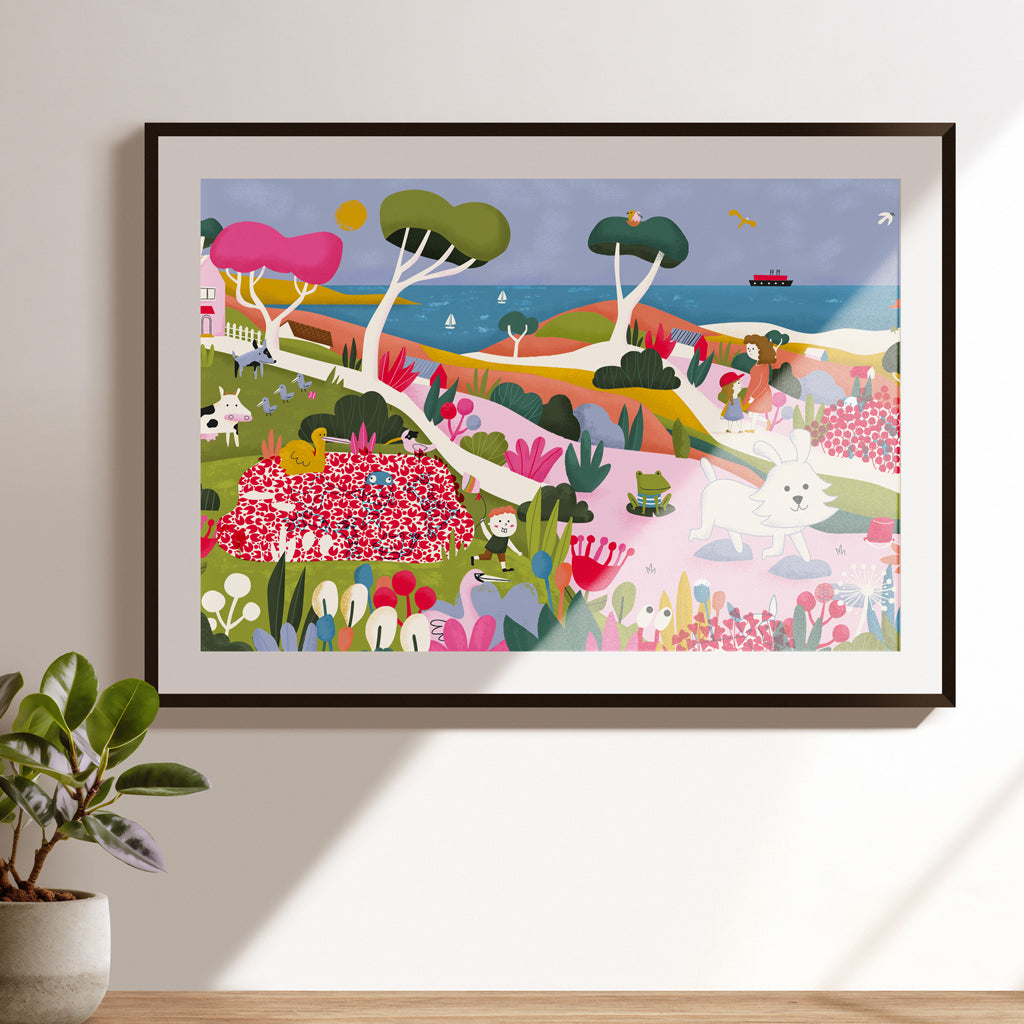 Disponible a pedido. Colorida ilustración impresa en papel fine art. Lista para enmarcar. Tamaños disponibles 20 x 25 cms, 30 x 40 cms y 50 x 70 cms.