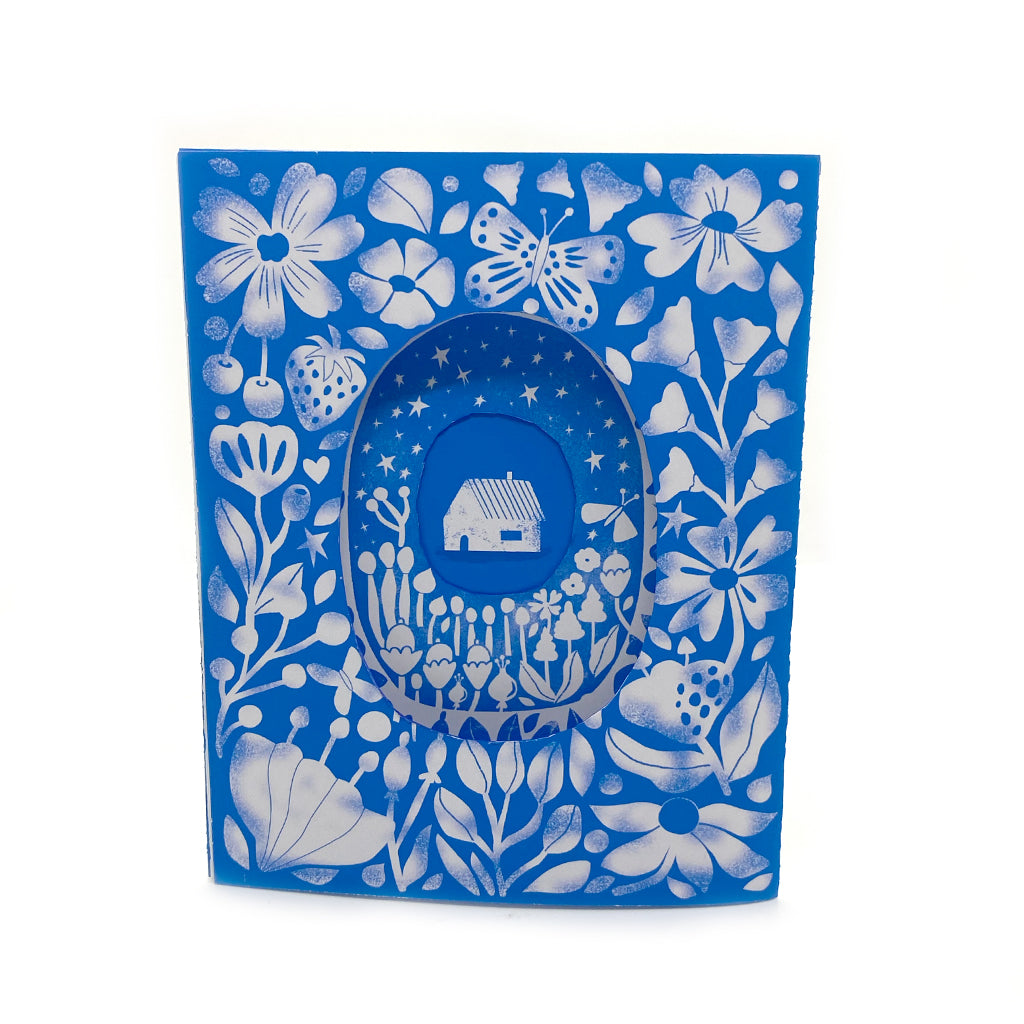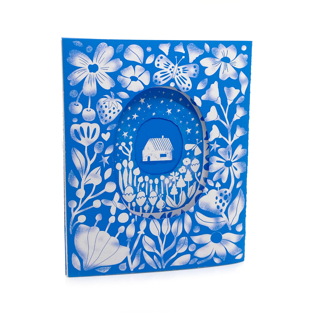 Tarjeta Casita fondo azul